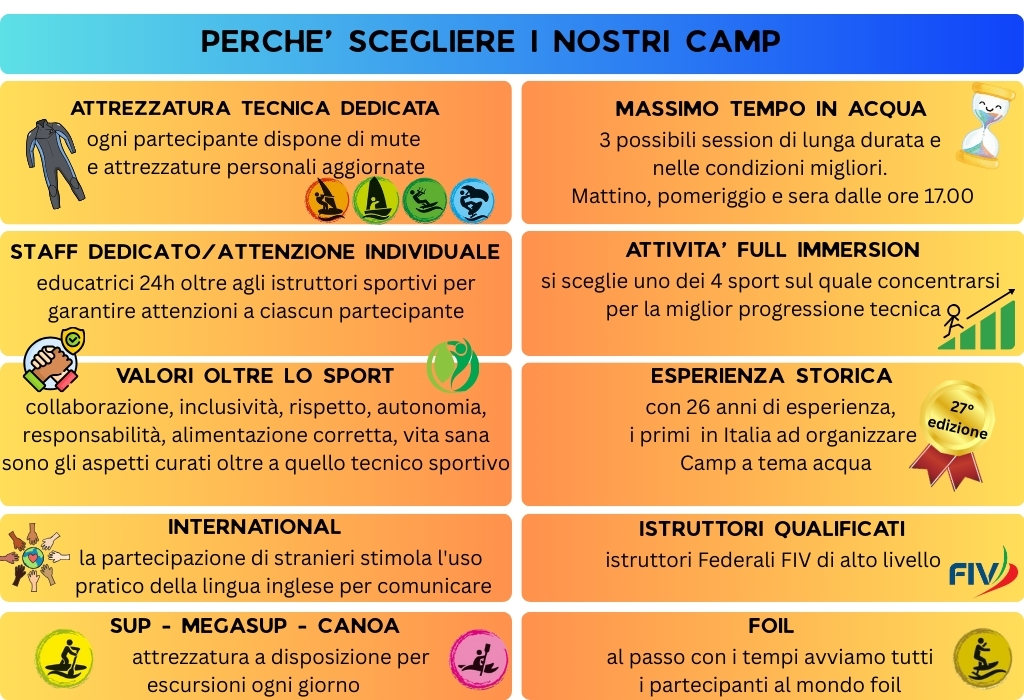 Il Camp di riferimento per giovani appassionati di windsurf, kitesurf, vela, wingfoil